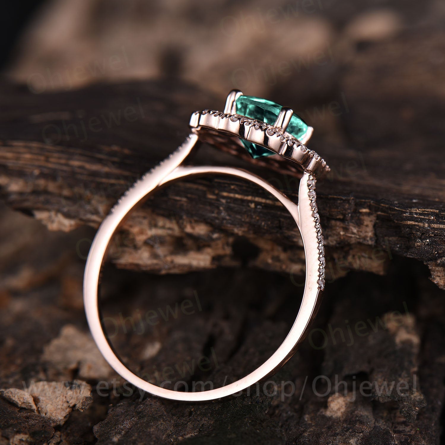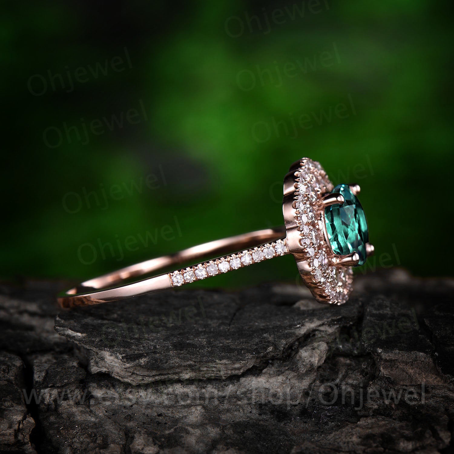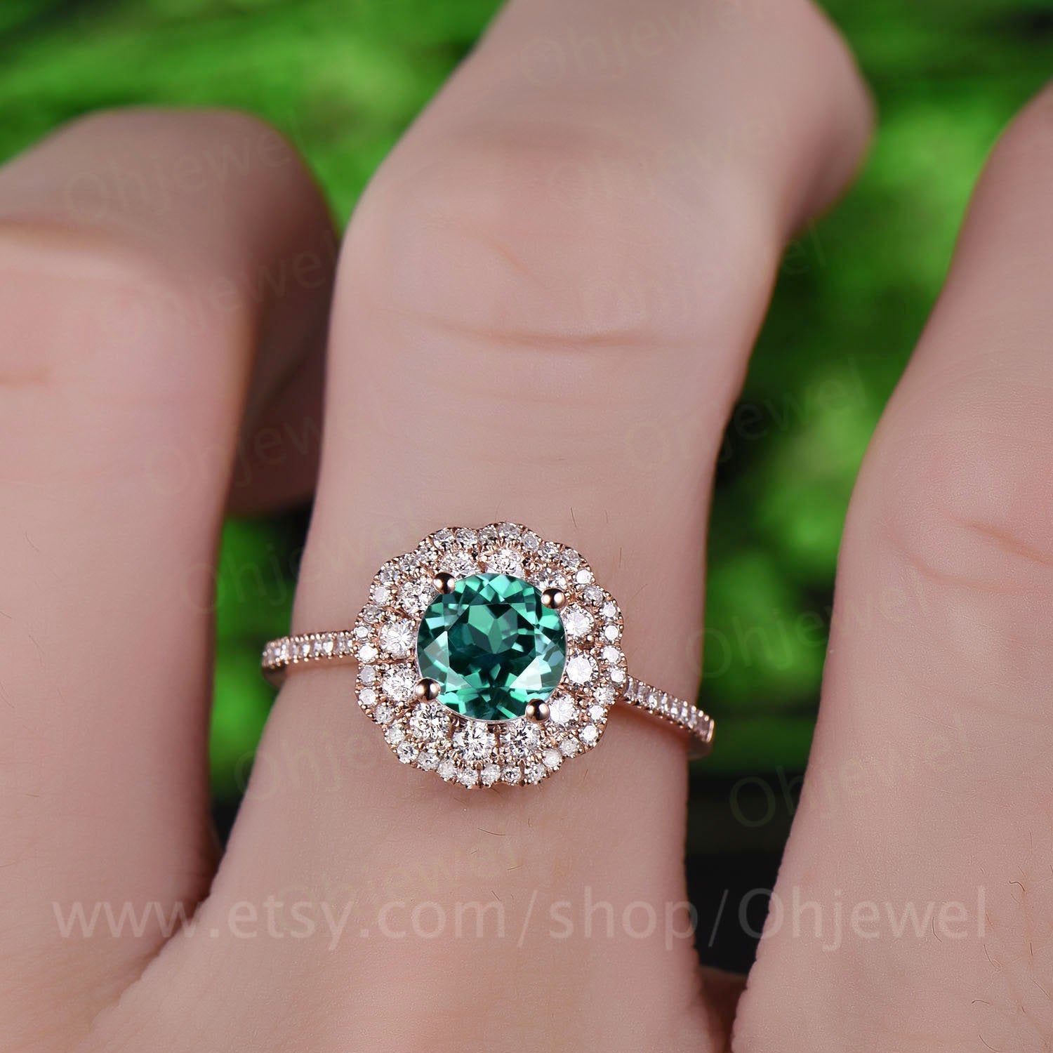 Green emerald engagement ring rose gold 14K/18K moissanite double halo ring emerald ring vintage may birthstone wedding ring fine jewelry