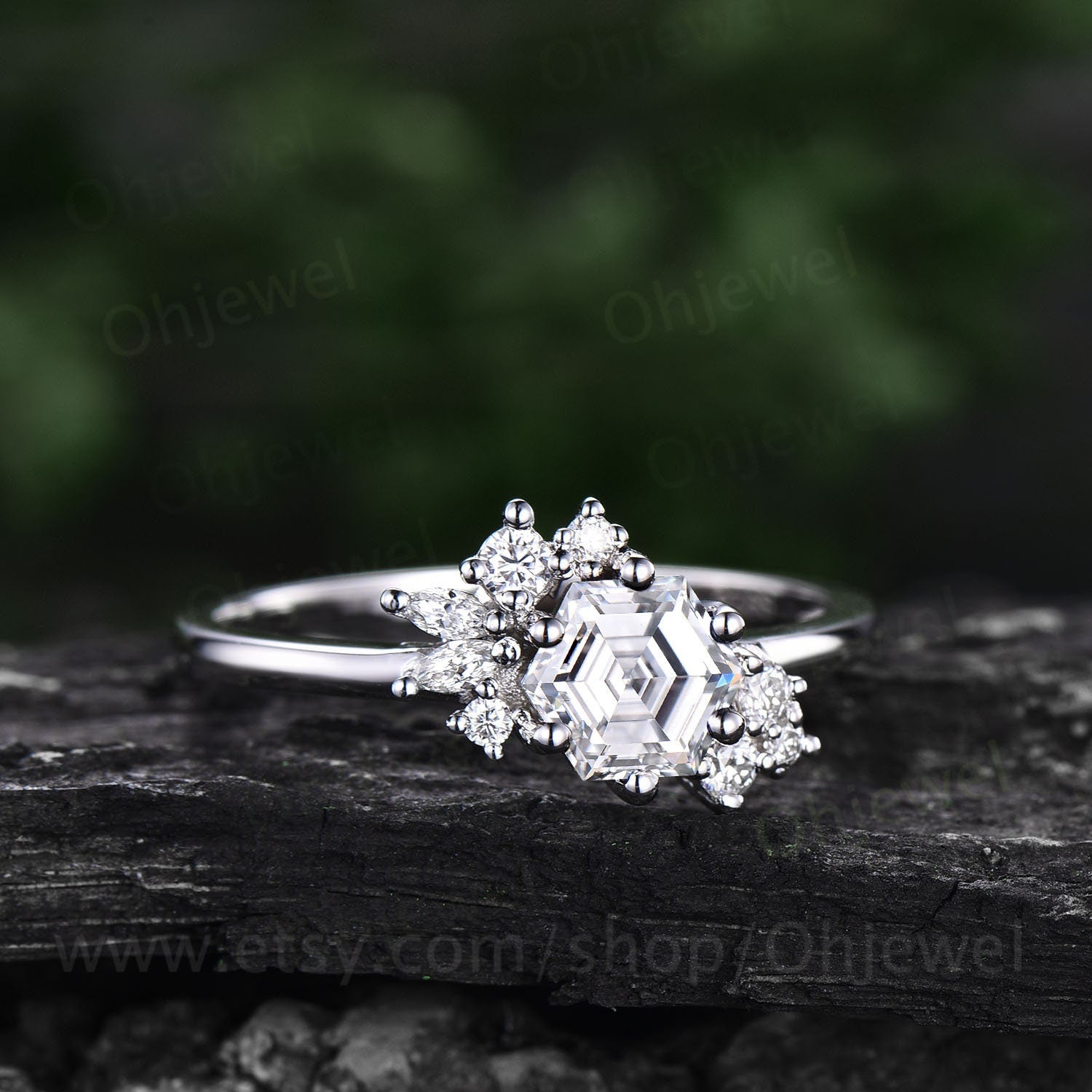 Hexagon cut moissanite ring gold silver for women Alternative culster unique Alexandrite engagement ring marquise cut diamond wedding ring