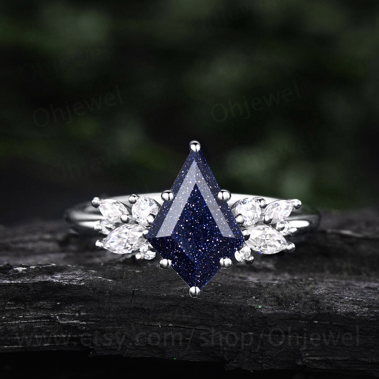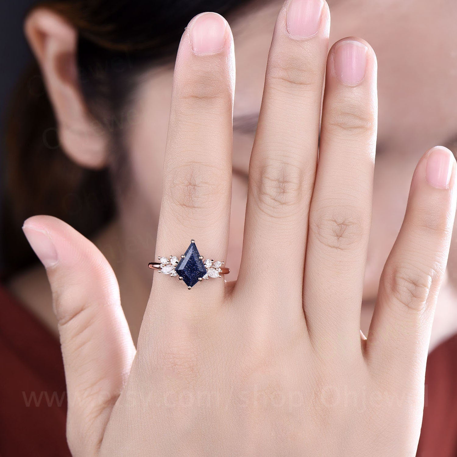 Kite cut blue sandstone ring rose gold cluster unique engagement ring for women marquise cut ring diamond wedding promise anniversary ring
