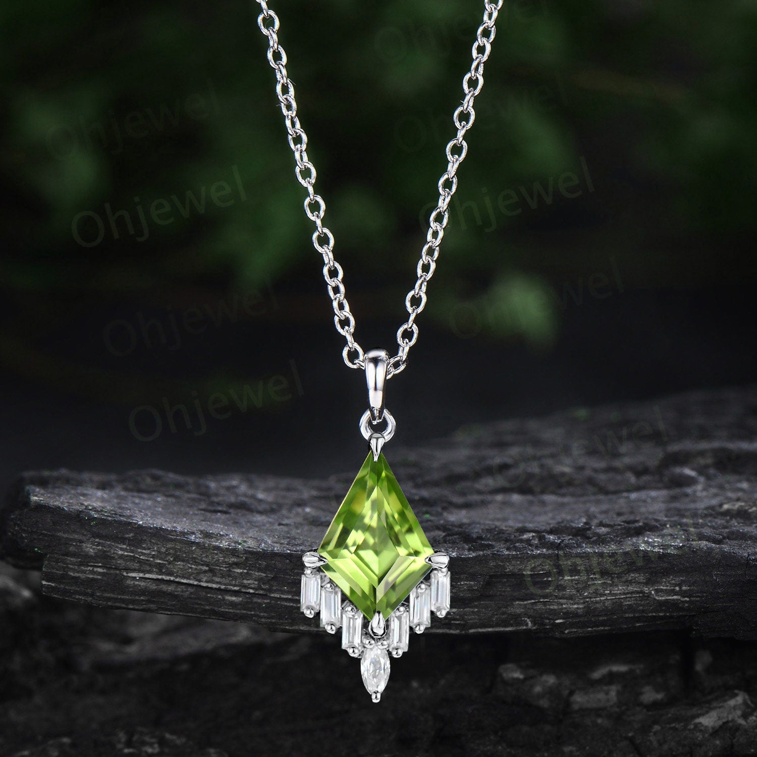 Kite cut natural peridot necklace rose gold cluster marquise baguette cut moissanite necklace pendant women art deco anniversary gift her
