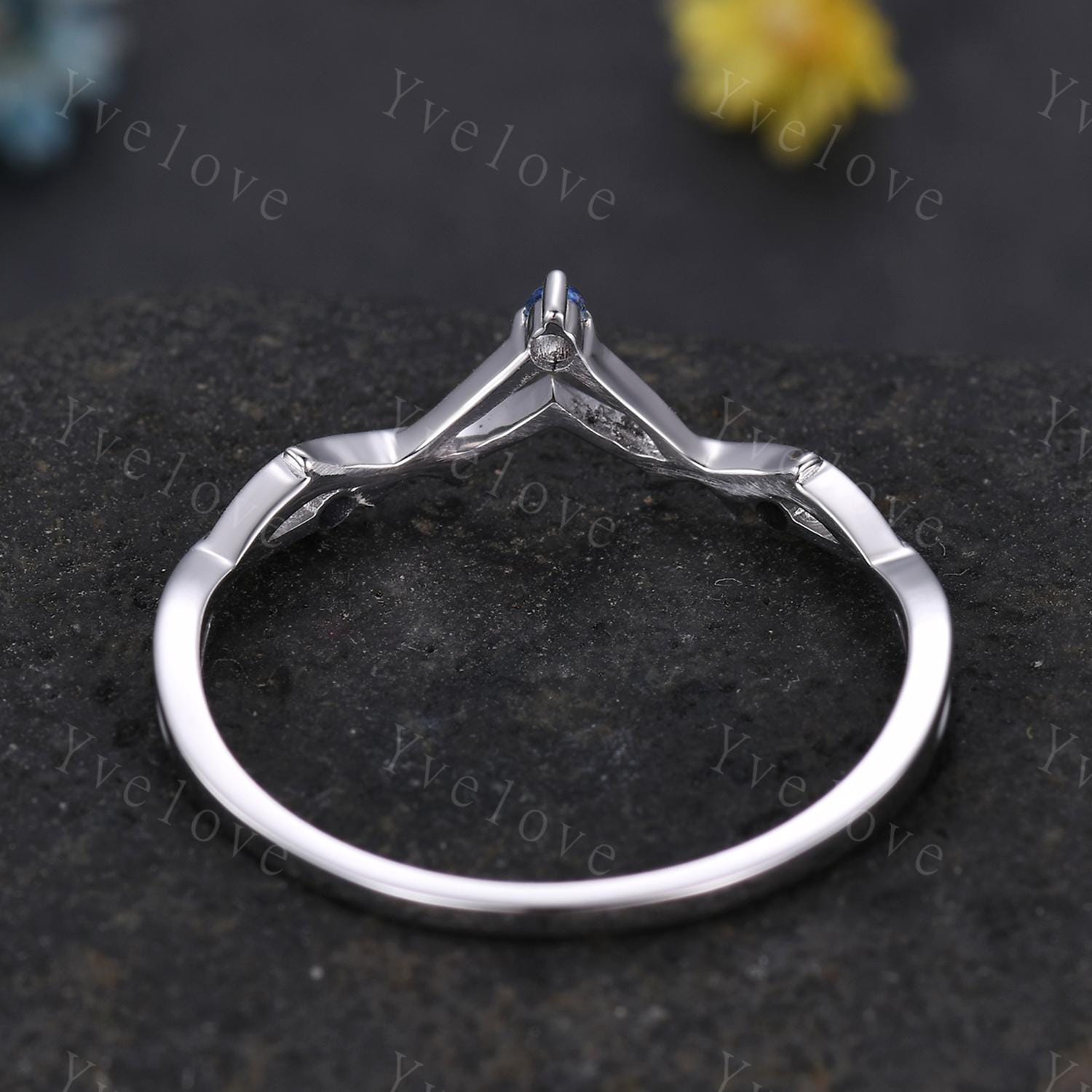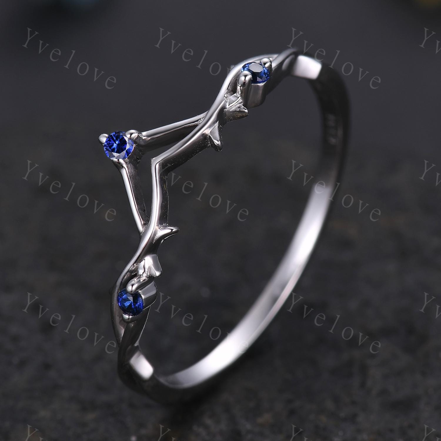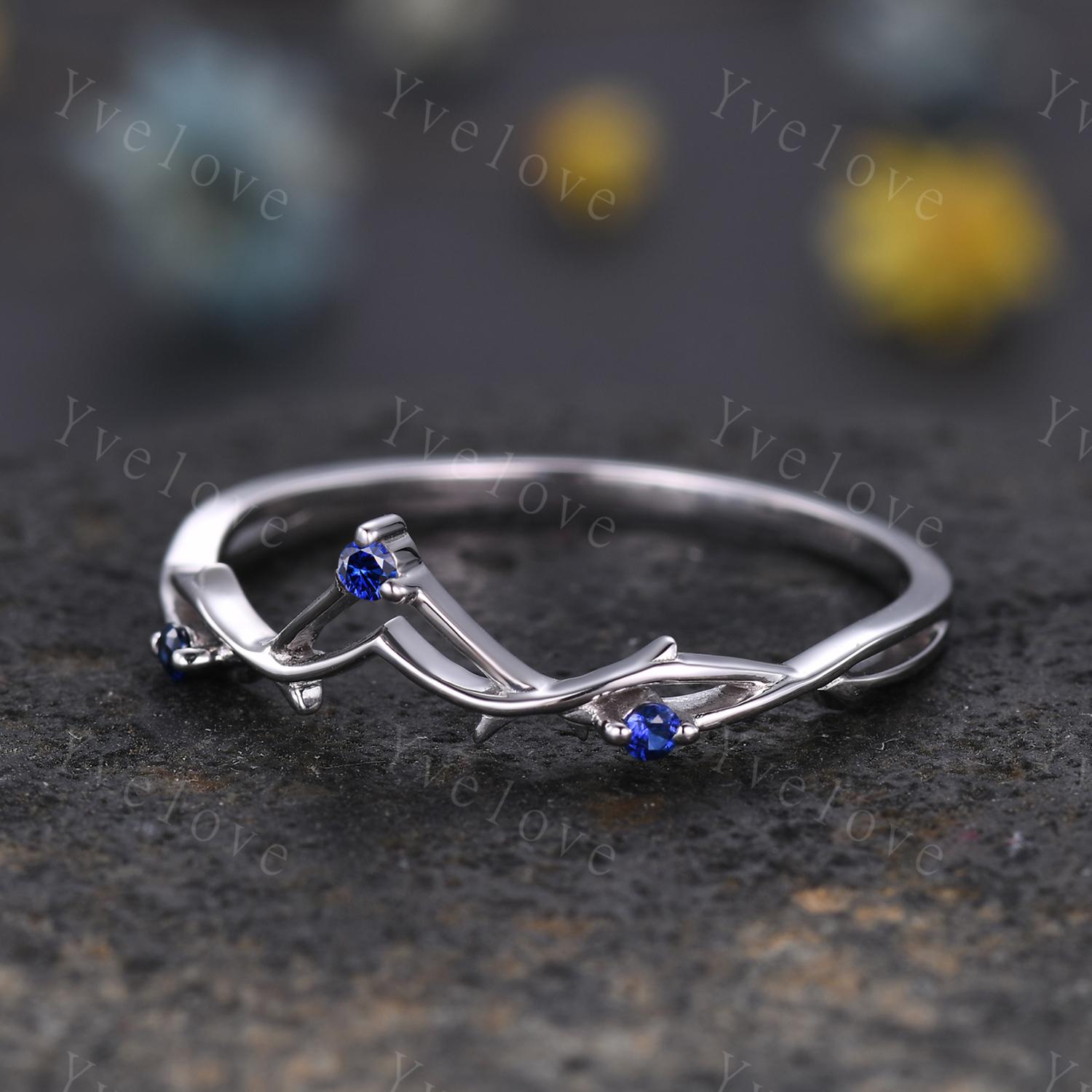 Minimalist Blue Sapphire Twig Engagement Ring,Twig Matching Band,Women Vine Band,Art Deco V Curved Branch Wedding Band,Sapphire Silver Ring