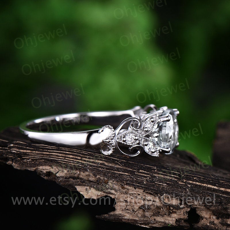 Natural moonstone engagement ring white gold 14K/18K diamond ring moonstone ring vintage unique gift promise wedding June birthstone ring