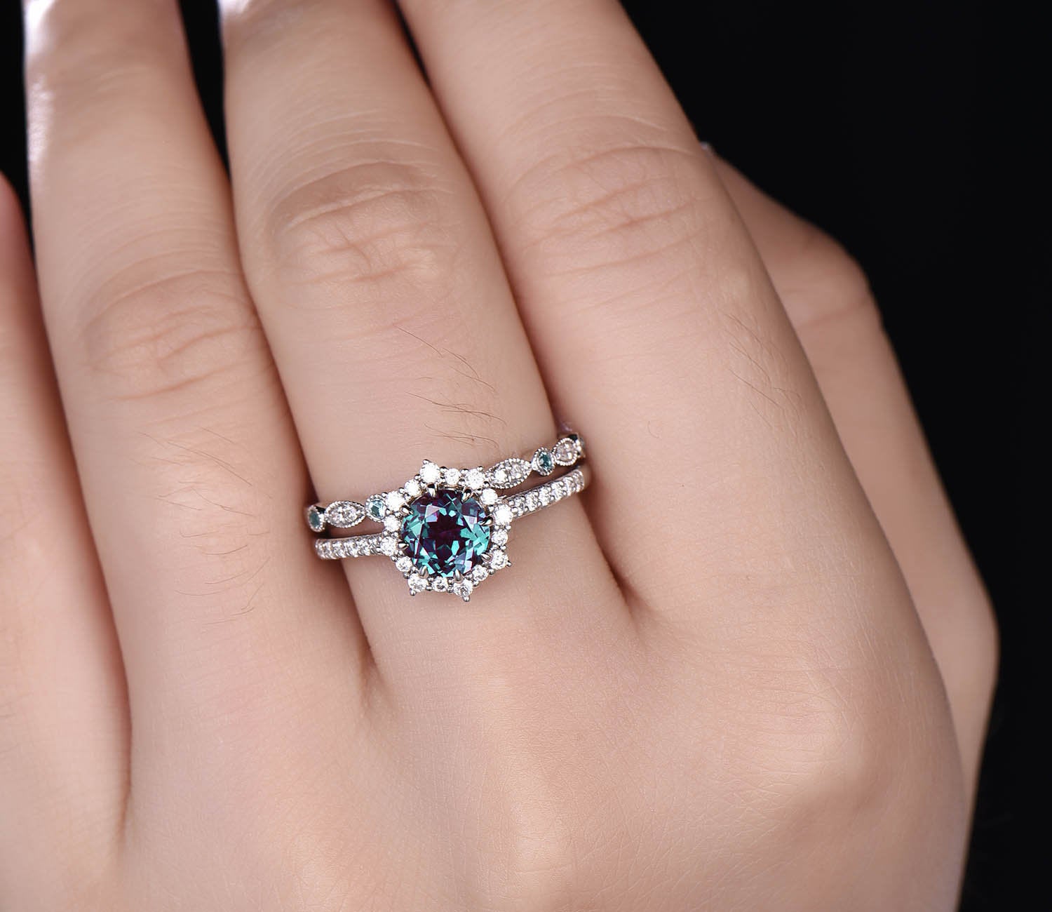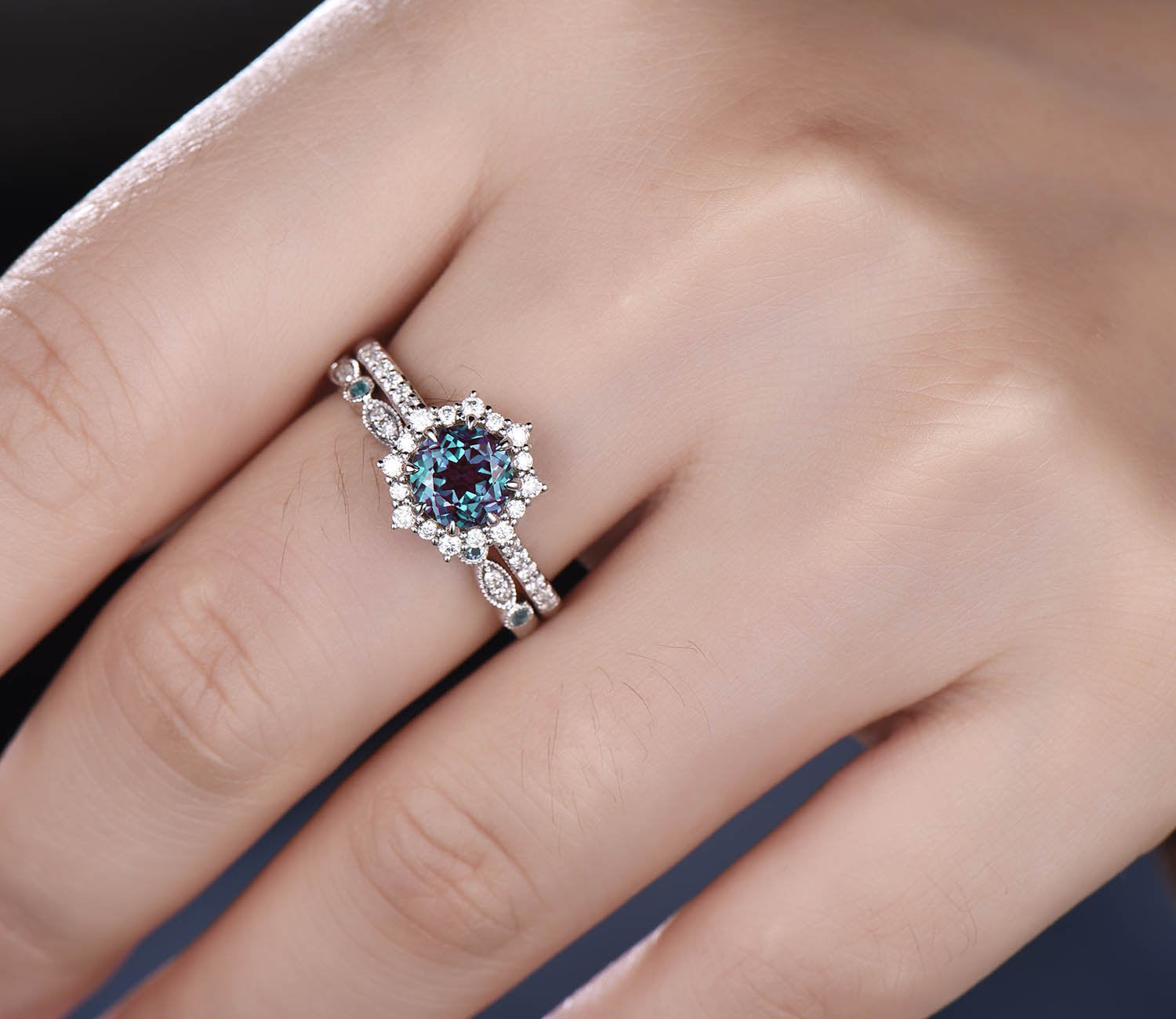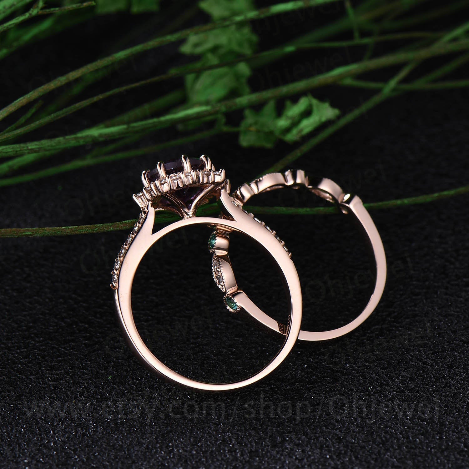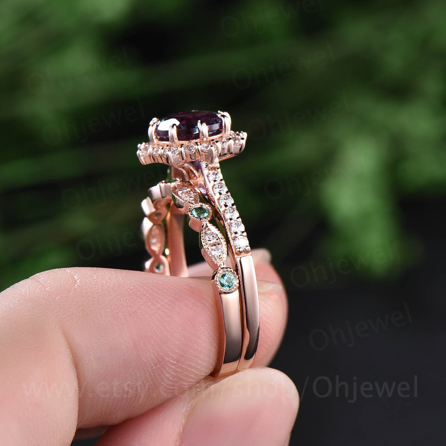 Only 1pc rose gold alexandrite diamond wedding band jewelry matching band