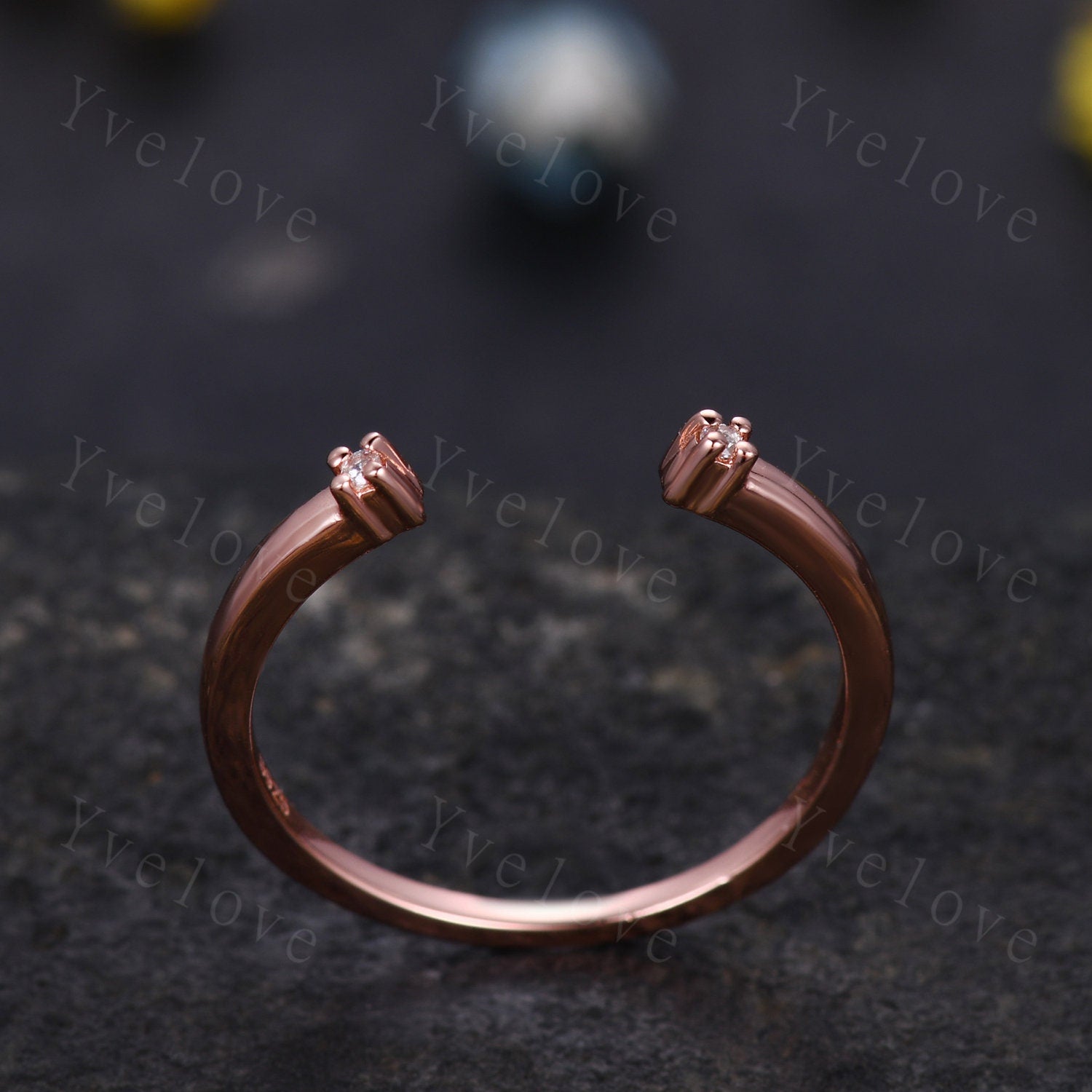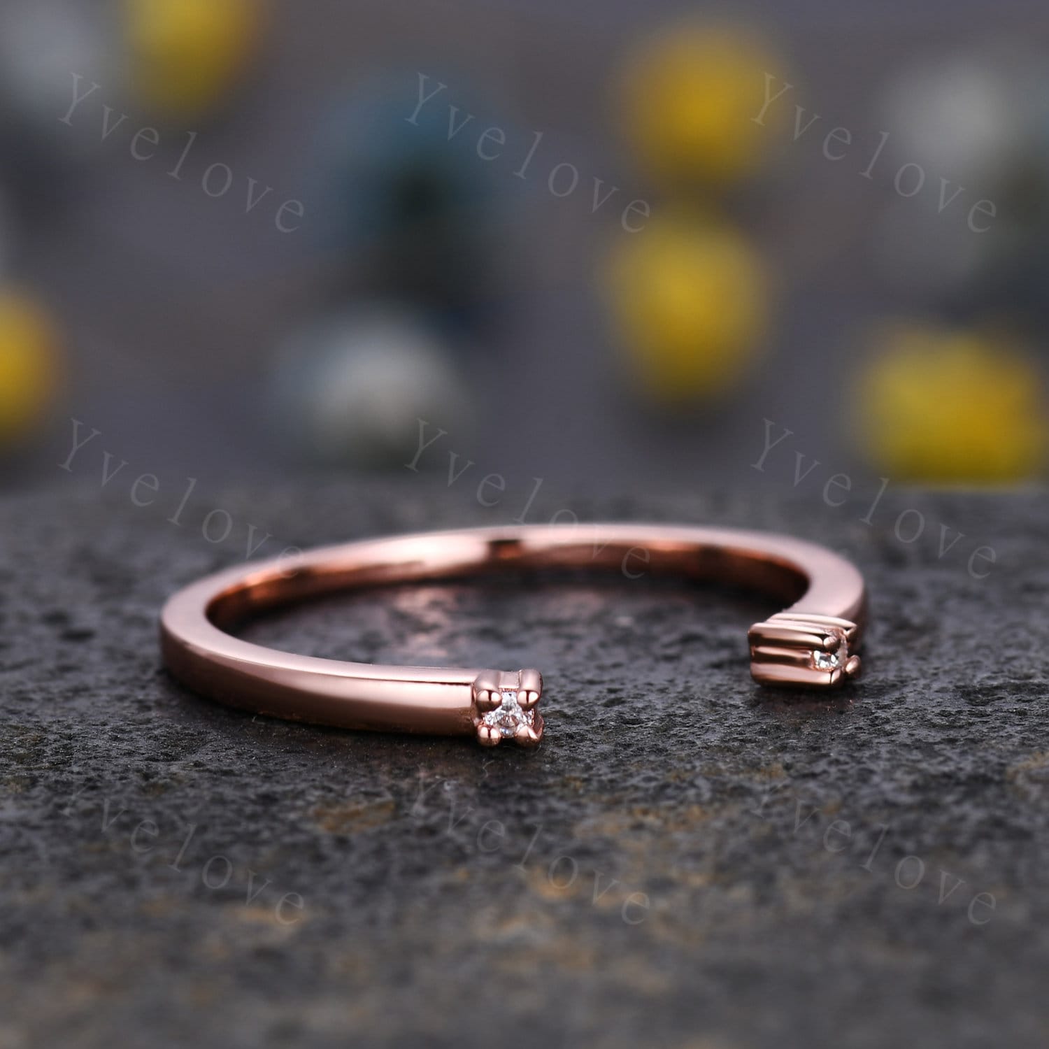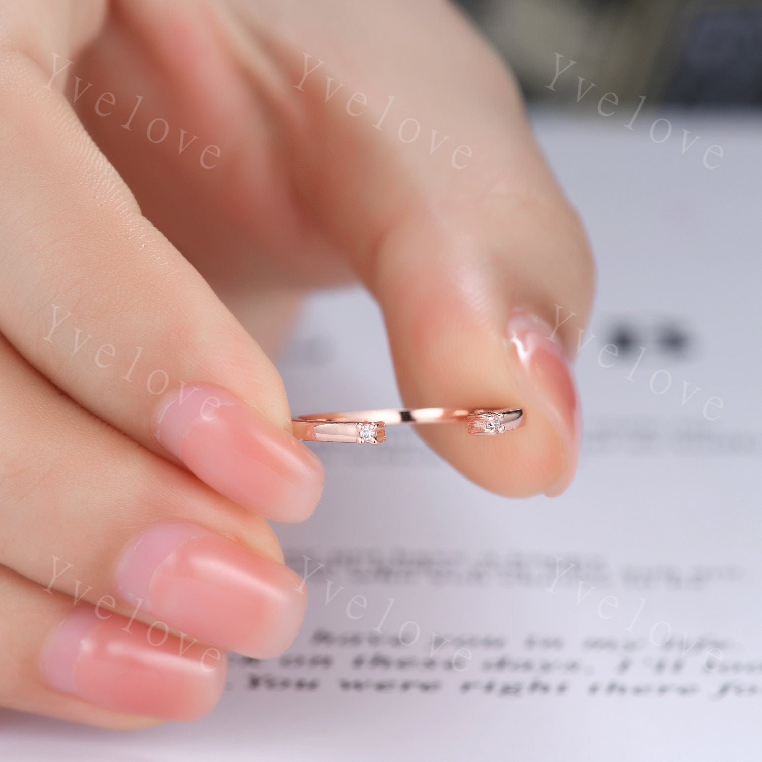 Open Gap diamond wedding band open ring 14k rose gold stacking ring natural diamond stacking matching band Anniversary promise ring gift