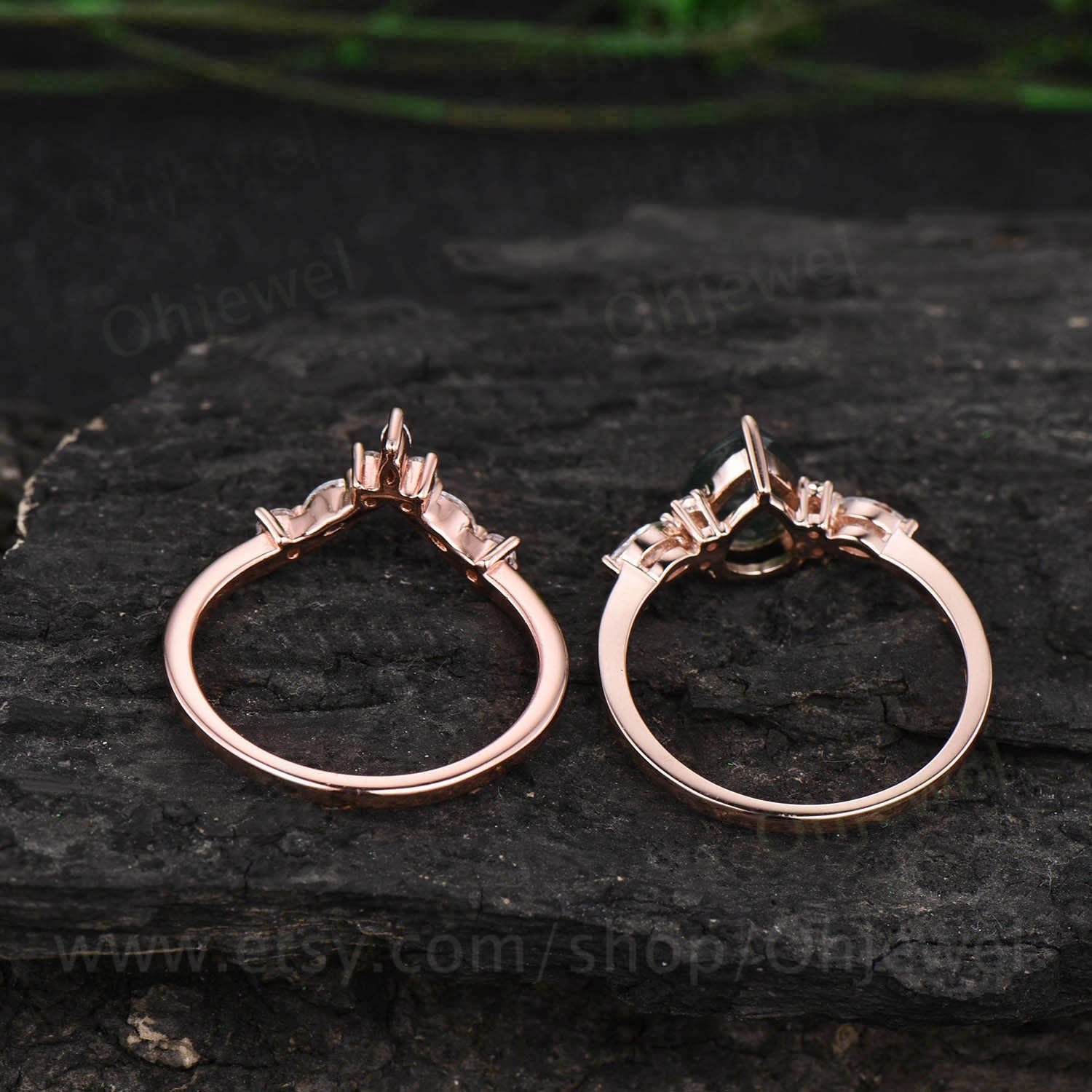 Pear shaped aquamarine ring gold silver for women vintage unique aquamarine engagement ring set art deco moissanite ring 14k rose gold ring