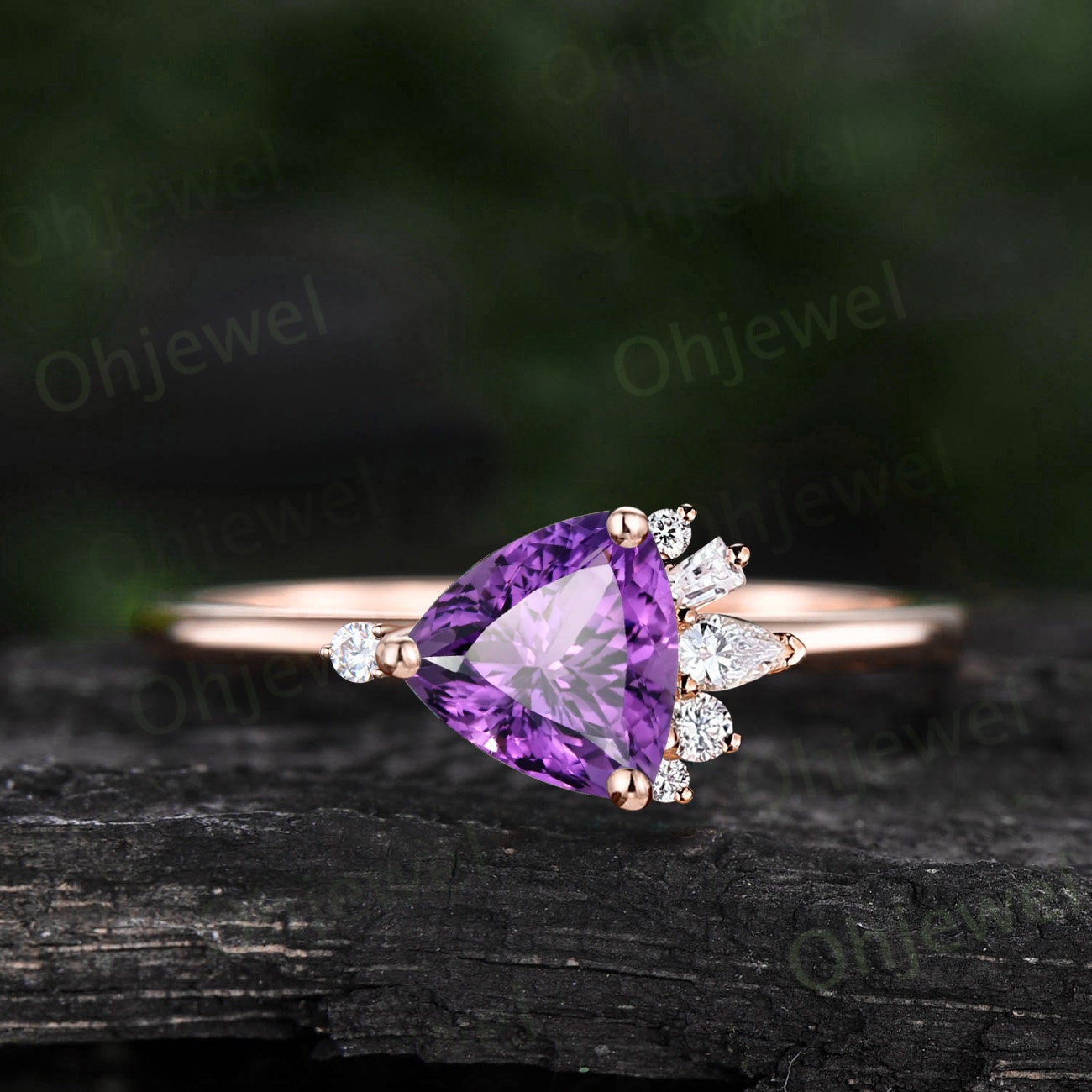Purple amethyst ring vintage Trilliant cut Amethyst engagement ring cluster moissanite ring 14k rose gold dainty wedding bridal ring women