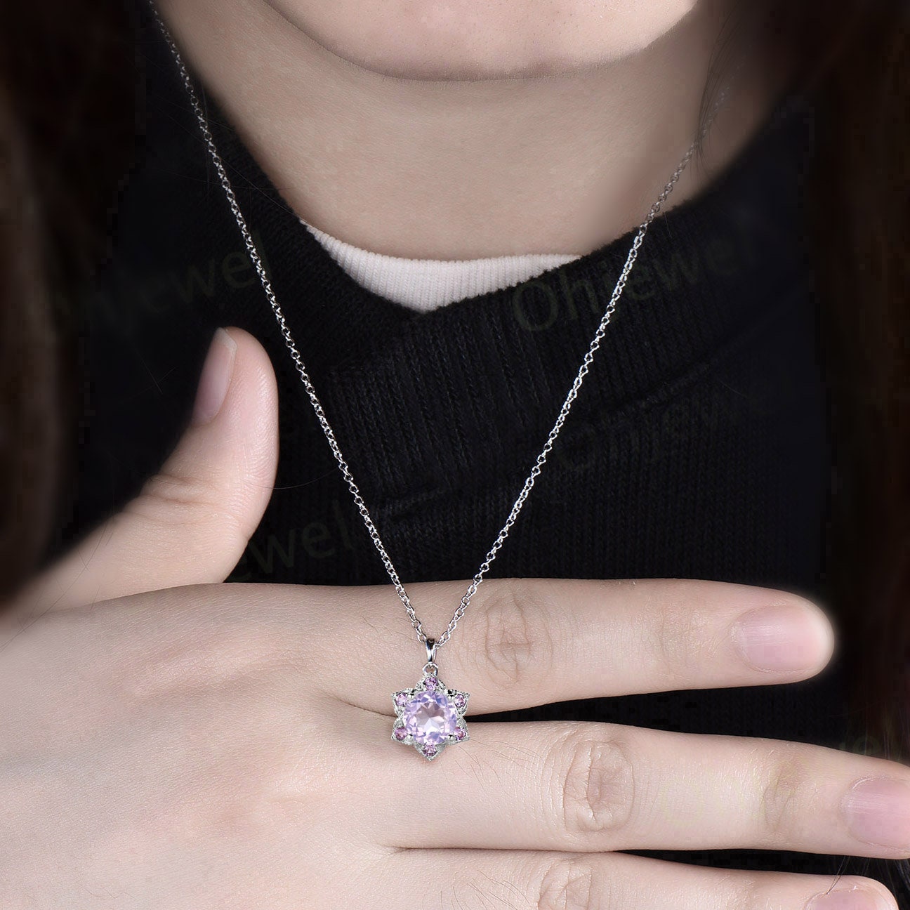Round Lavender Amethyst necklace vintage milgrain floral purple amethyst Pendant women rose gold February birthstone anniversary gift her