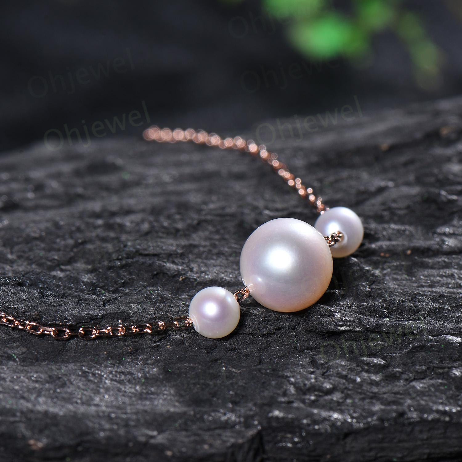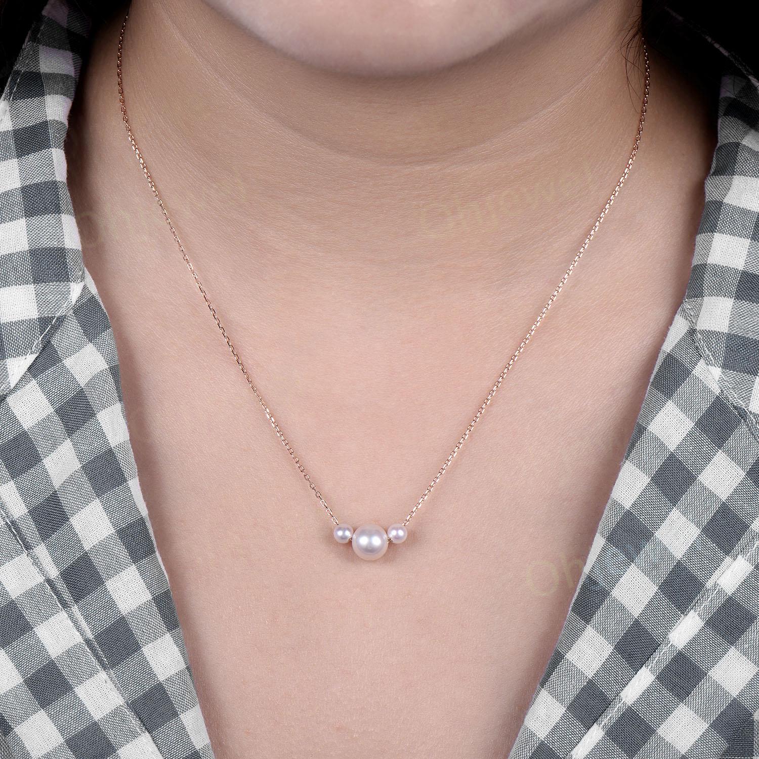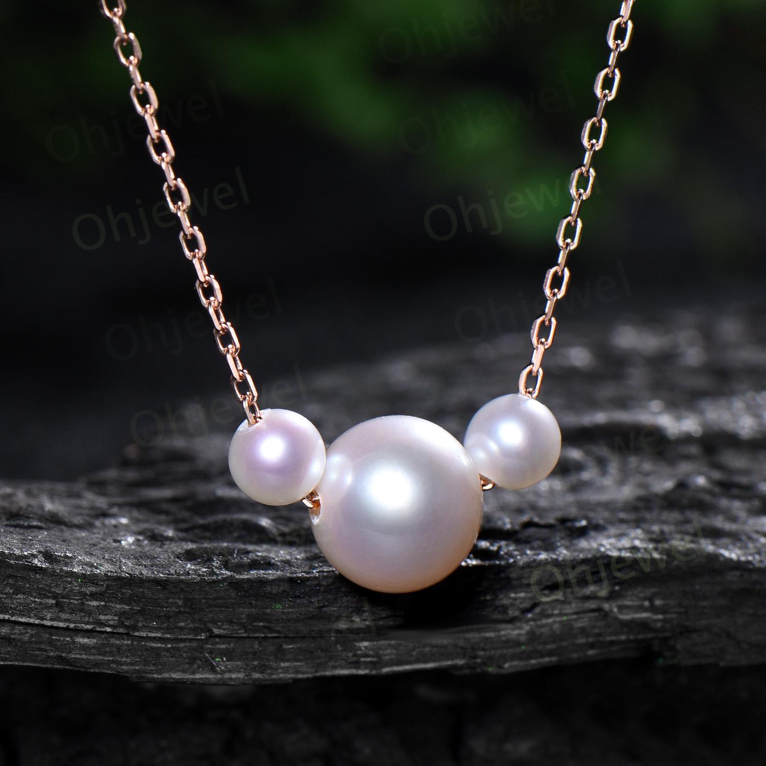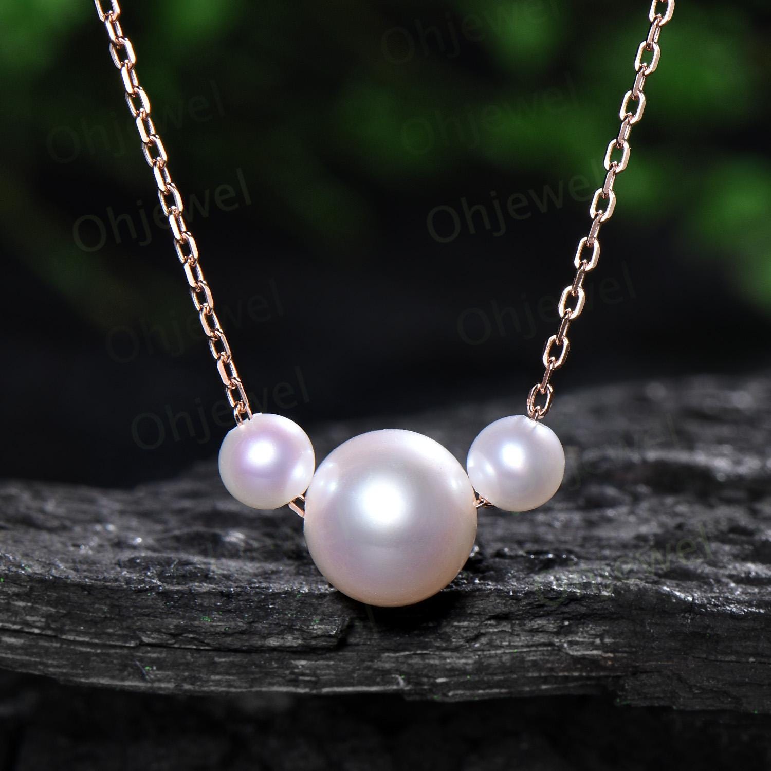 Three stone freshwater pearl necklace 14k rose gold Simple natural pearl necklace June birthstone pendant anniversary gift for women mother