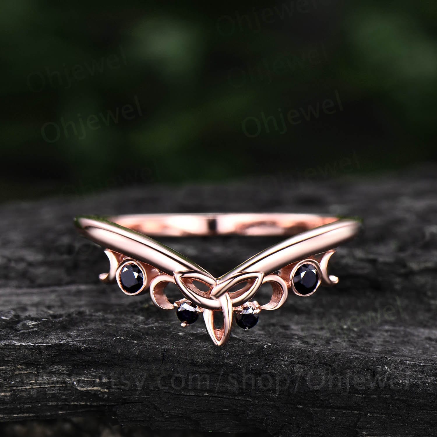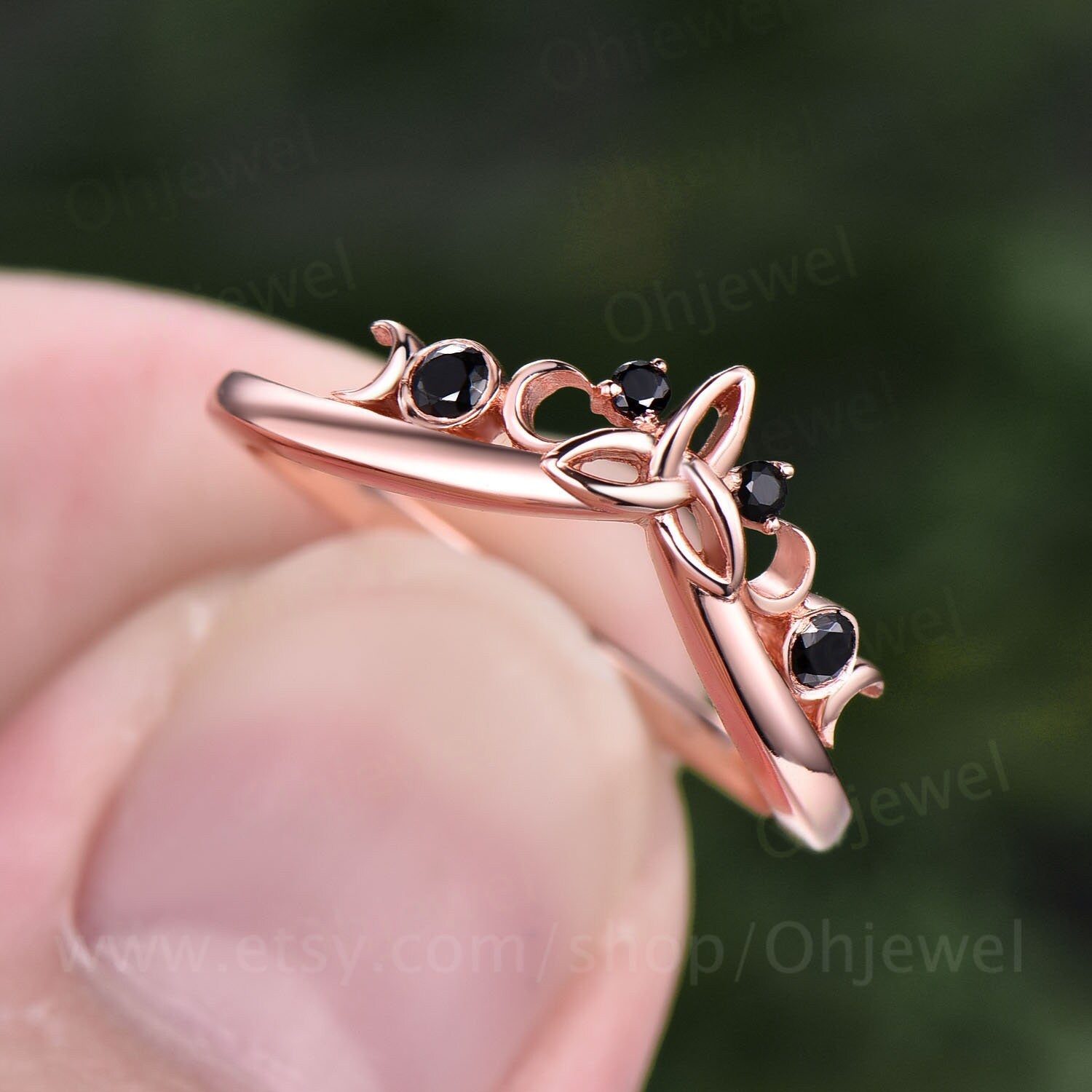 Unique black diamond wedding band Celtic Knot Norse Viking ring band Jewelry rose gold silver ring for women bridal anniversary ring gifts