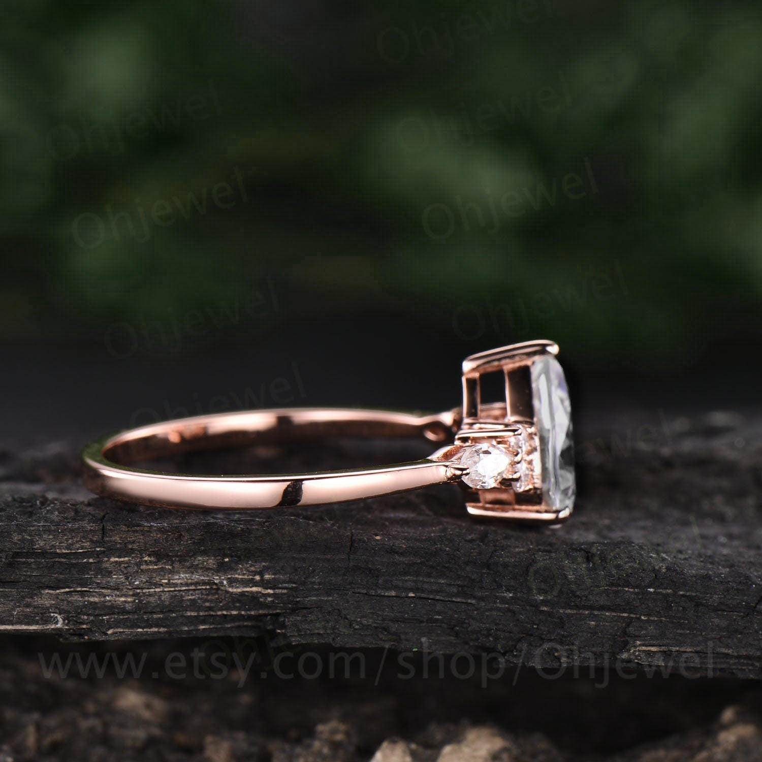 Unique pear shaped labradorite engagement ring art deco 7 stone marquise moissanite ring for women rose gold sterling silver handmade ring