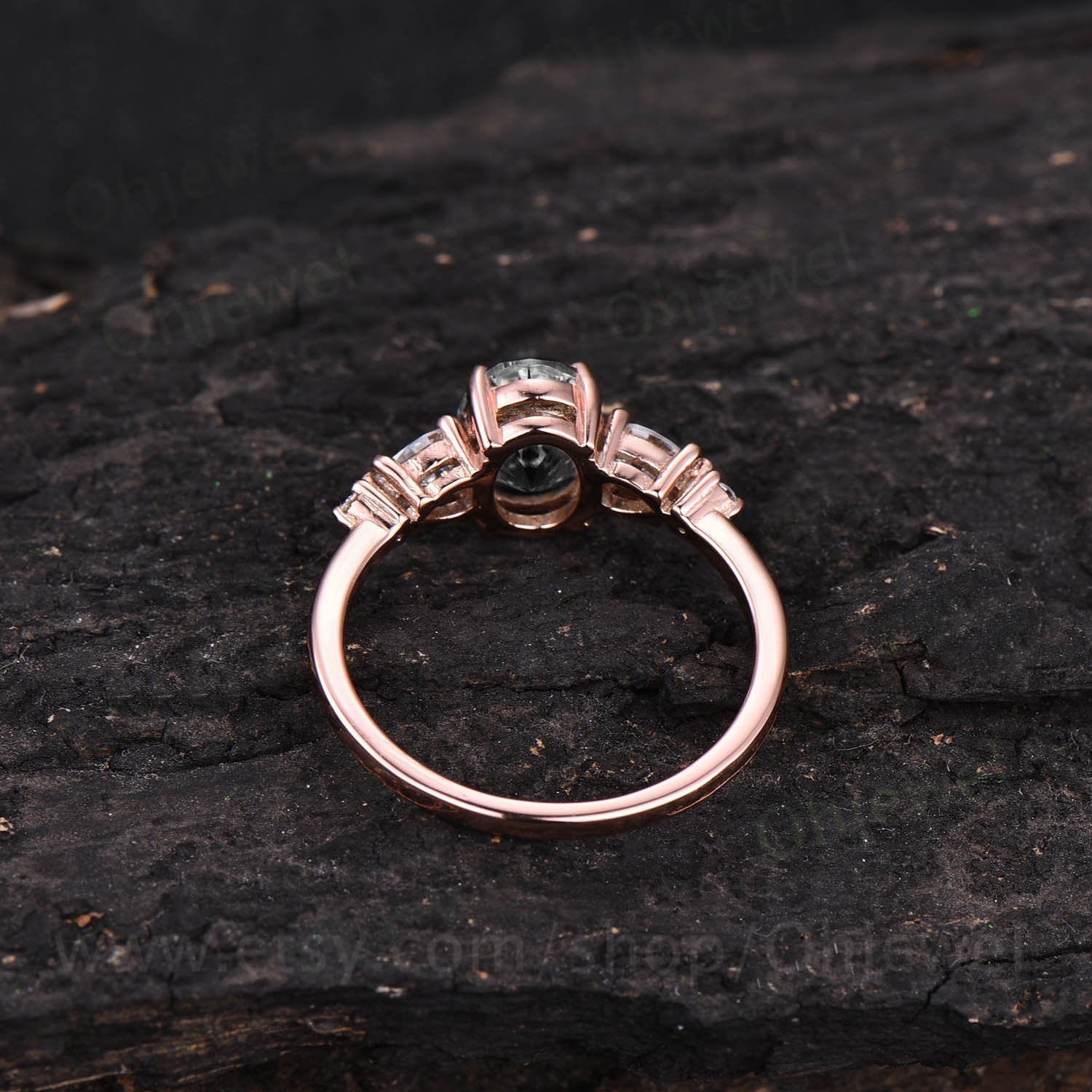 Vintage black rutilated quartz engagement ring for women rose gold moissanite ring oval cut bridal ring custom jewelry unique wedding ring