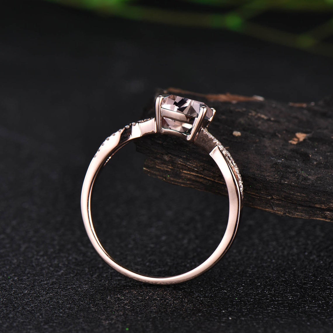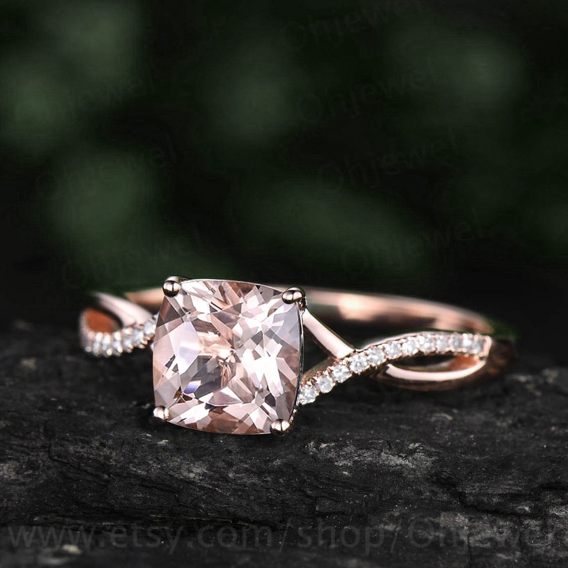 Vintage cushion cut morganite engagement ring solid 14k rose gold infinity Twisted half eternity diamond ring anniversary ring for women