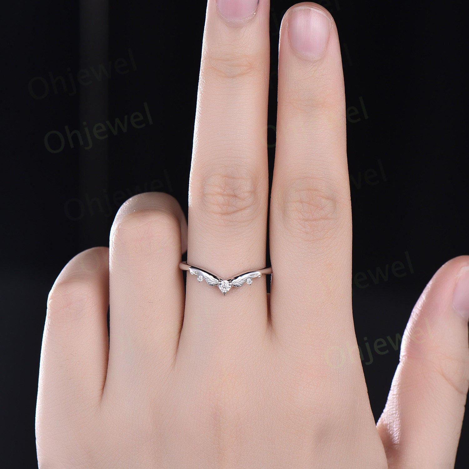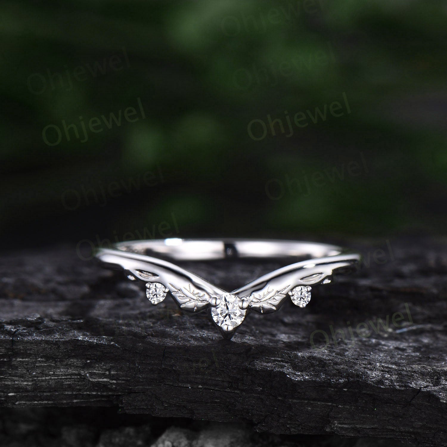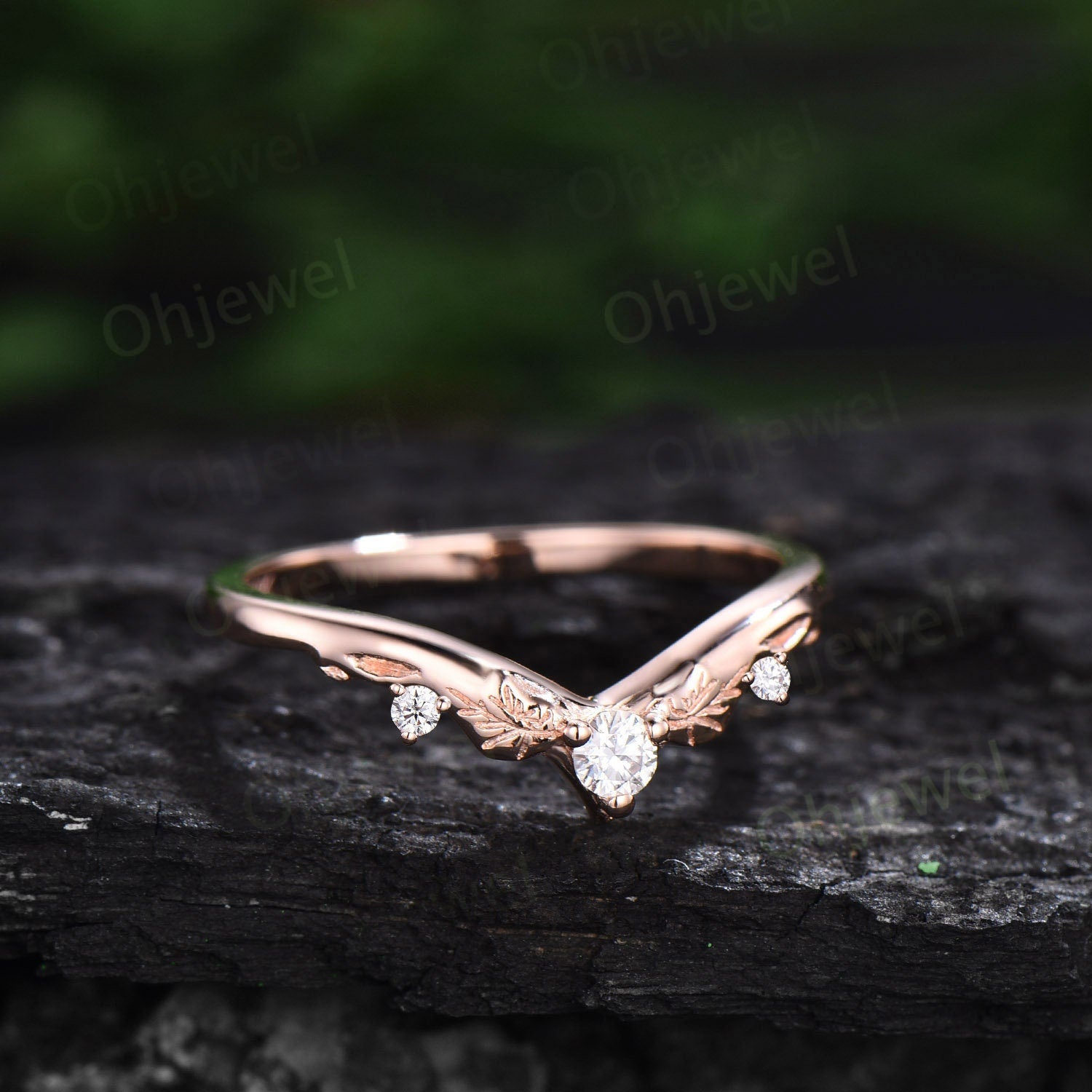 Vintage diamond wedding band 14k rose gold unique V shaped curved moissanite wedding ring band silver stacking anniversary ring women gift