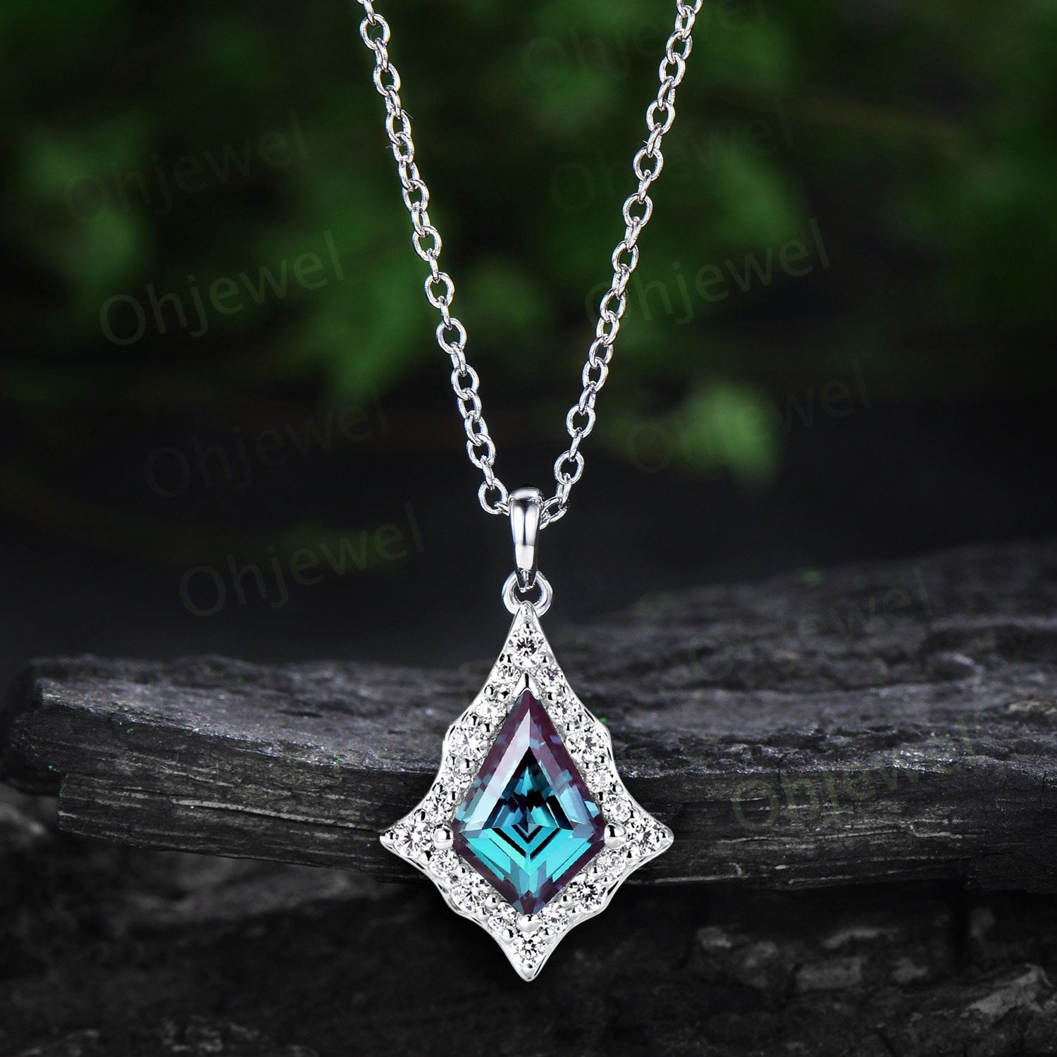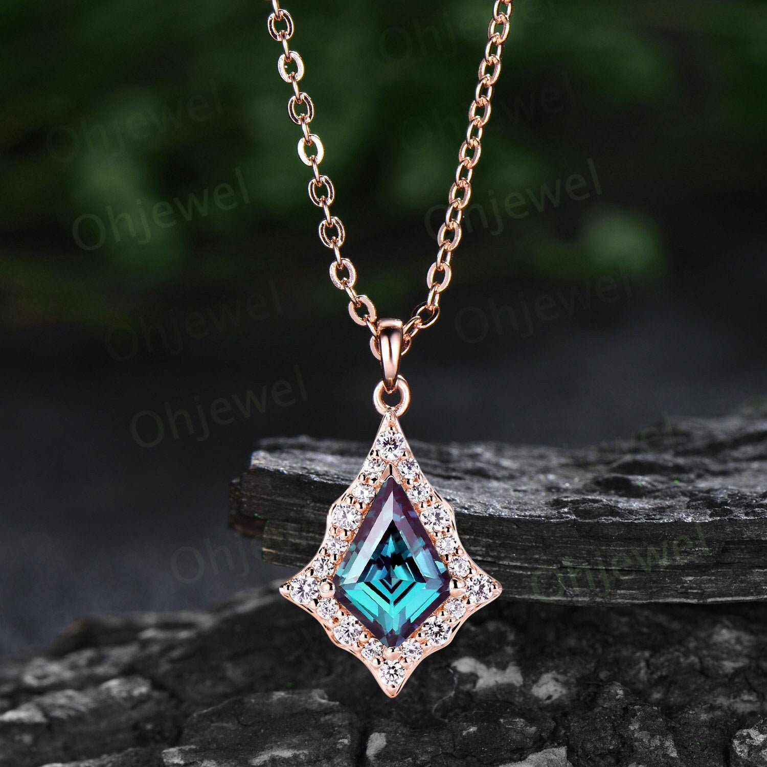 Vintage kite cut alexandrite necklace rose gold antique unique snowdrift halo diamond necklace Pendant women fine jewelry anniversary gift