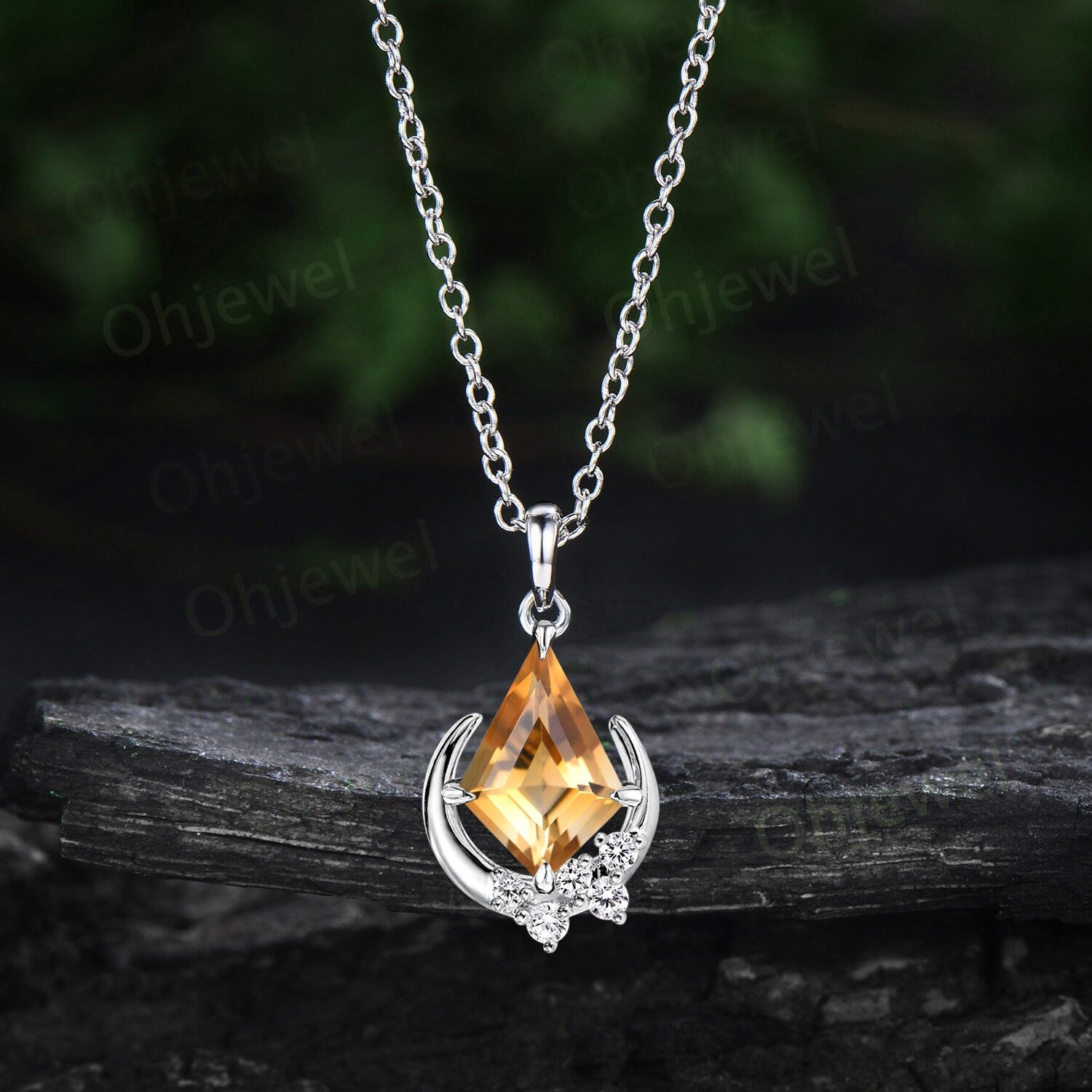 Vintage kite cut yellow citrine necklace rose gold crystal antique moon snowdrift diamond Pendant anniversary gift for women gemstone