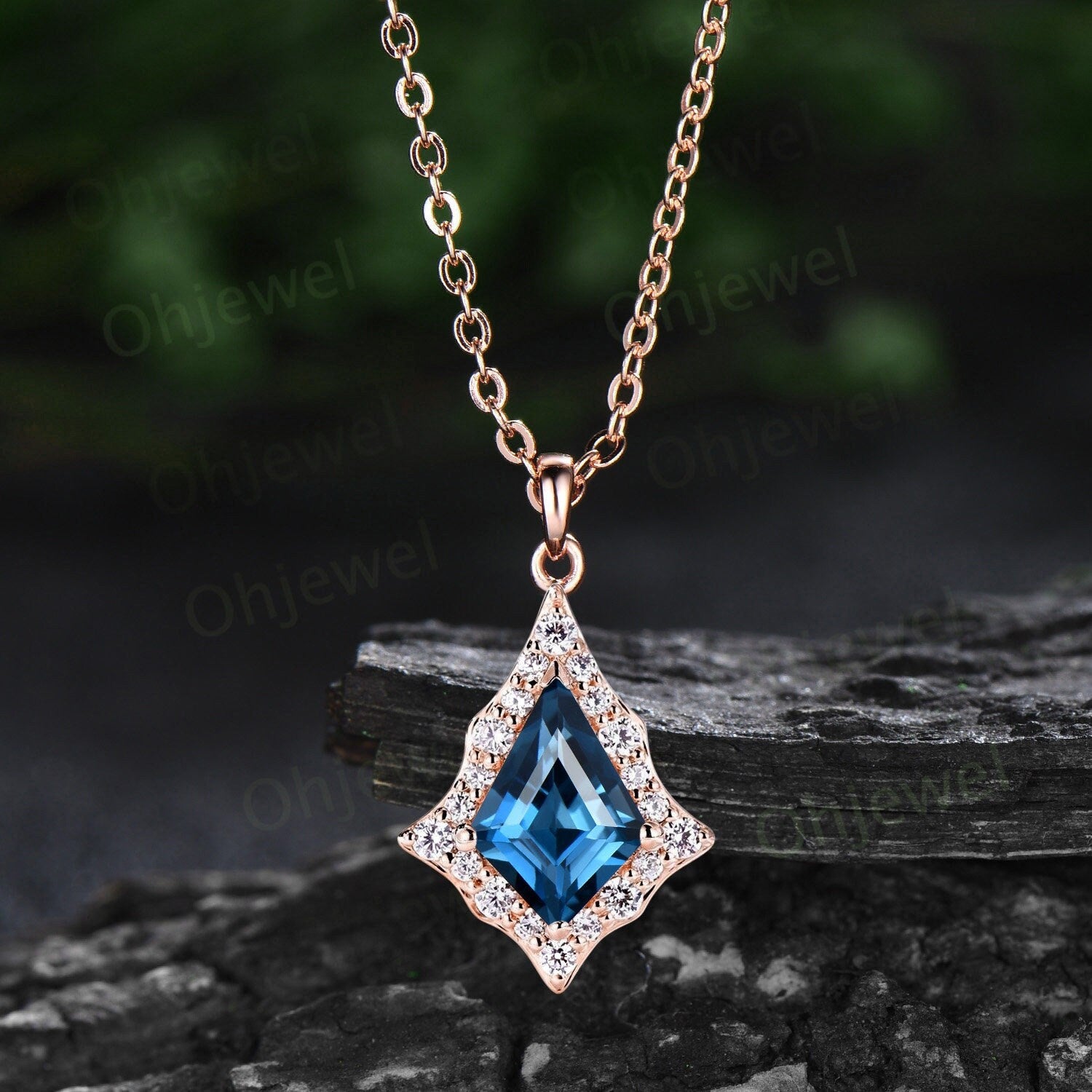 Vintage kite London blue topaz necklace rose gold antique unique snowdrift halo diamond necklace Pendant women opal jewelry anniversary gift