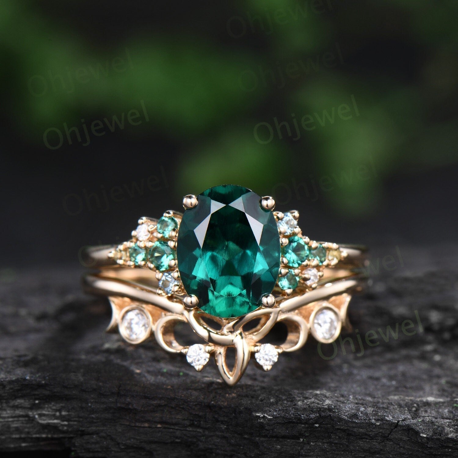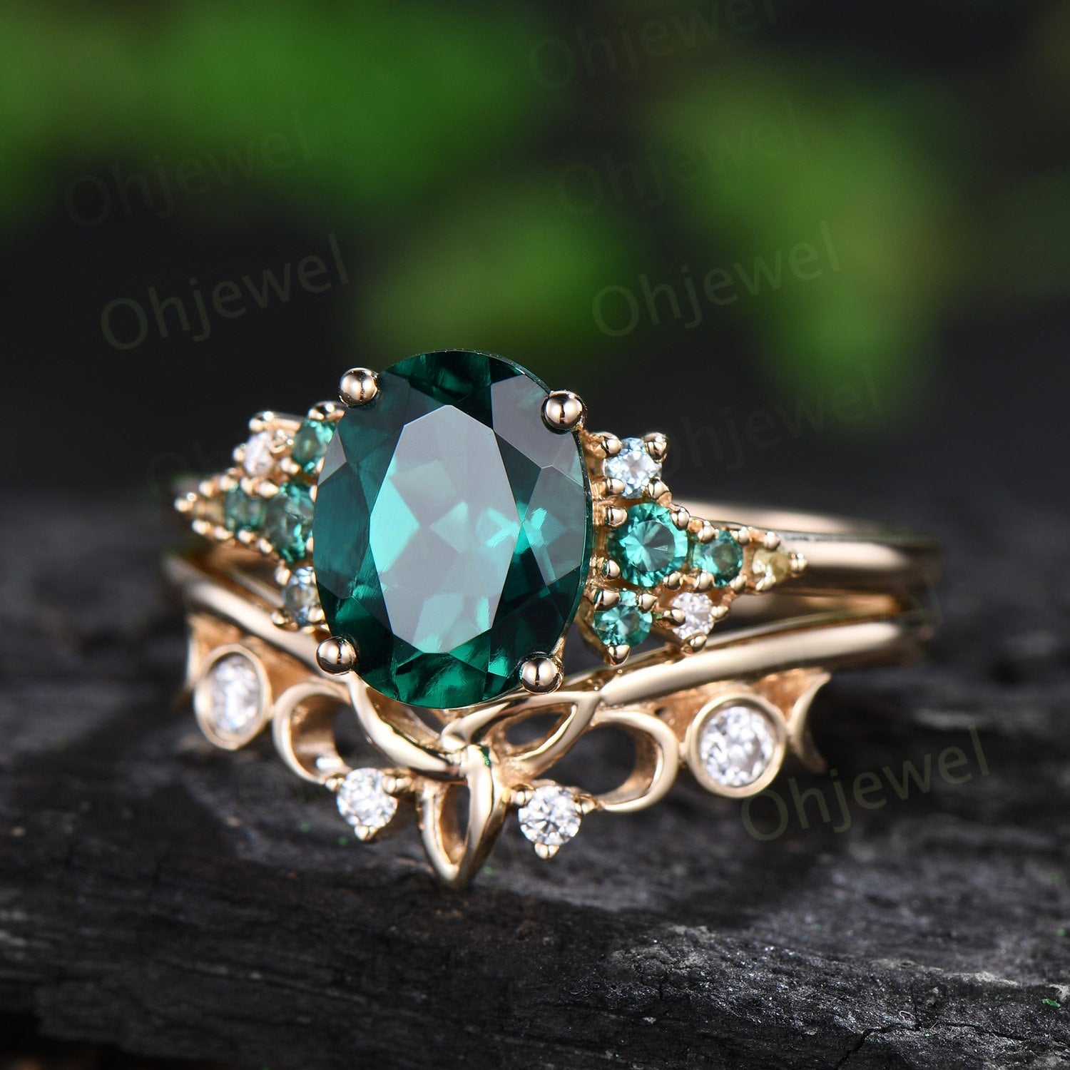 Vintage oval cut emerald engagement ring set solid 14k rose gold cluster snowdrift peridot topaz ring women gemstone ring unique bridal ring