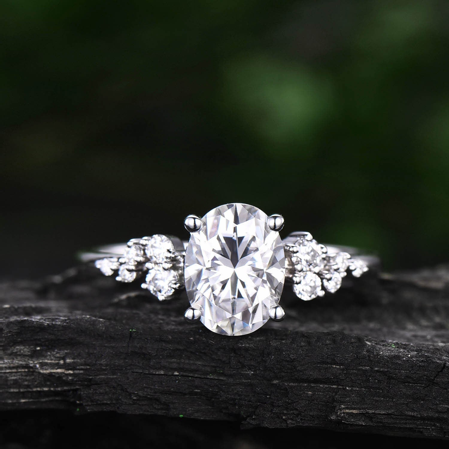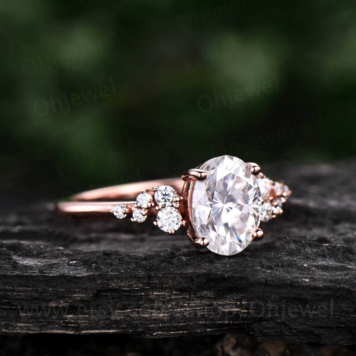 Vintage oval cut moissanite engagement ring 14k rose gold dainty cluster snowdrift unique engagement ring anniversary wedding ring for women
