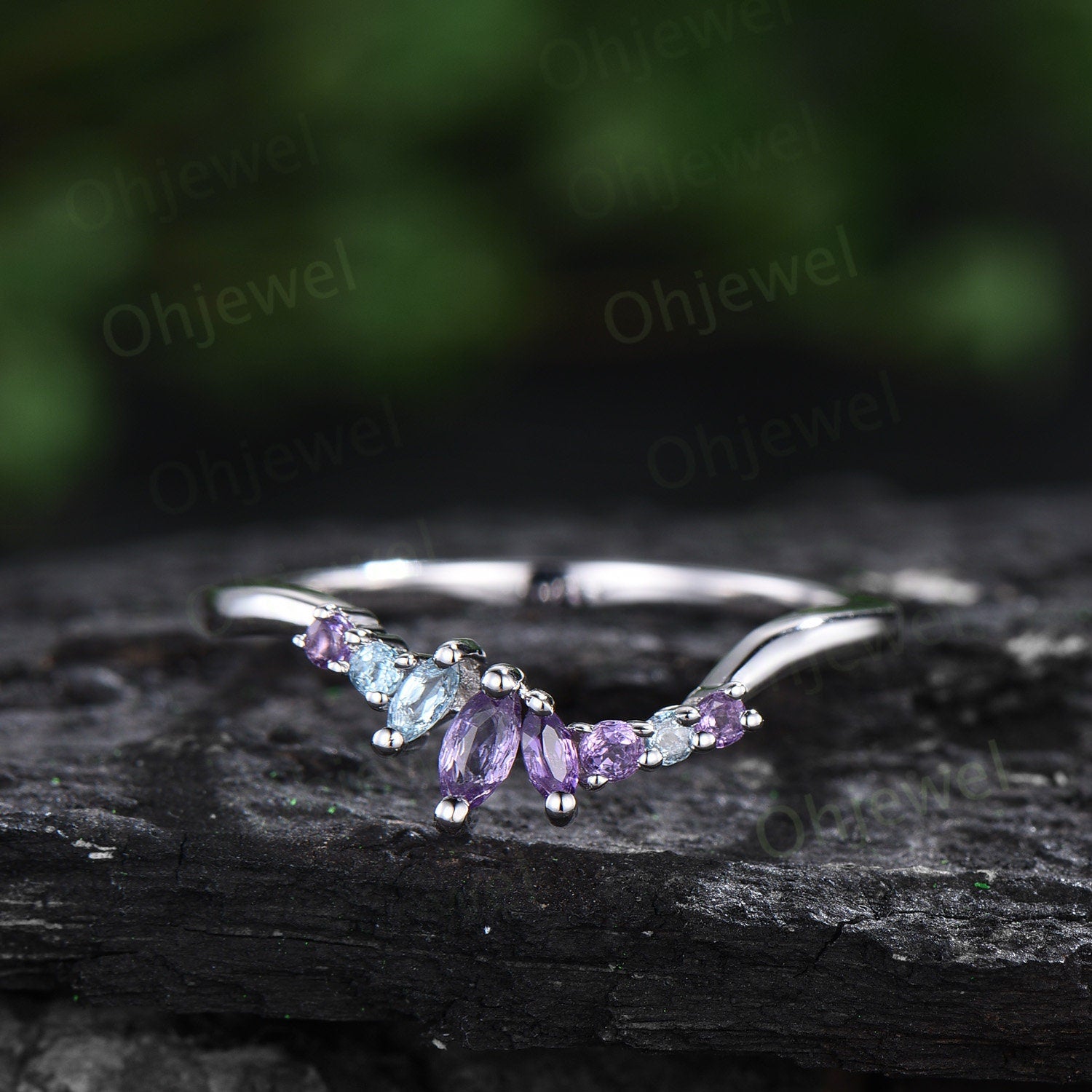 Vintage round Alexandrite engagement ring white gold snowdrift cluster amethyst topaz ring women gemstone crystal ring unique wedding ring