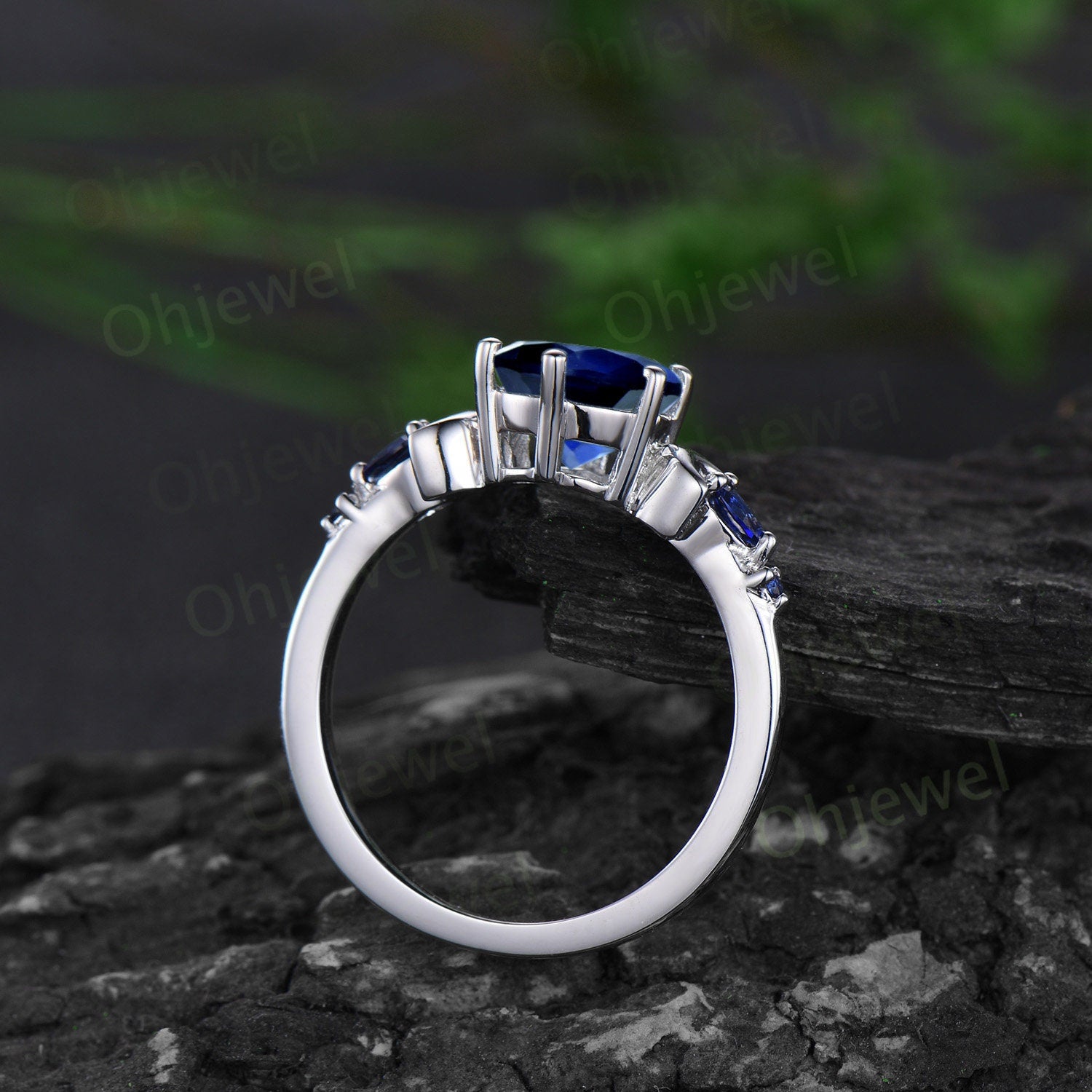 The accent stones are pear lab sapphires.